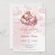 Design moderno para os convites para a Baby Shower apresenta um ursinho de pelúcia rosa dourado sobre a nuvem. Típica de desenho da mão moderna. Não hesite em contactar-me para obter itens ou personalizações correspondentes. Rosas de cor Bebê ©