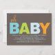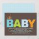 Gráfico e contemporâneo, este design apresenta "oh BABY" escrito em padrões divertidos de listras e bolinhas em um trendy e popular esquema de cores azul, verde limão e laranja contra um fundo marrom-macio. Vamos todos os seus convidados sabem em um instante que um doce bebê está a caminho. Fácil de personalizar com todos os detalhes de suas celebrações, e faz uma declaração limpa e moderna para a futura mãe contemporânea de hoje.