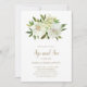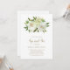 Vestido floral elegante e veja convite com flores pintadas de aquarela em tons neutros de marfim, branco e champanhe junto com um pouco de verde. Abaixo estão os detalhes de seu evento em tom dourado com o título do evento no script. Este sofisticado convite é perfeito para uma nova menina.