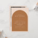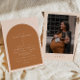 Este chá de fraldas apresenta uma combinação de cor laranja queimada boêmica e bege cremoso, um simples arco e design minimalista moderno. Este convite para chás de fraldas é a adição perfeita ao seu chá de fraldas de deserto neutro em termos de gênero ou a qualquer outro evento especial. Todos os textos e cores são editáveis. Adicione a sua foto à parte de trás para um toque pessoal.