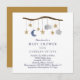 Este adorável convite para o chá de fraldas apresenta um móvel de bebês rústicos com um tema noturno, incluindo a lua, estrelas e nuvens. Ele conjuga imagens de músicas clássicas em lula. Todo o texto pode ser personalizado.