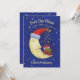 Este convite para chás de fraldas de Natal é perfeito para chás de fraldas de Natal. Esta design apresenta uma lua vestindo um chapéu de Papai Noel com um bebê em um berço descansando nele. O fundo é azul com estrelas e flocos de neve. O texto da frente diz "Sobre a Lua É um Chá de fraldas em Honra de" com um nome por personalização abaixo. No verso estão todos os detalhes do seu chá sobre um fundo azul correspondente com estrelas e flocos de neve. Projetado pelo artista mundialmente famoso ©Tim Coffey.