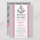 Convites Chá de fraldas náutico de âncora rosa e Cinza