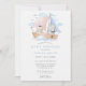 Celebre a chegada de um bebê com este adorável convite de chá de fraldas de tema náutico. Apresentando um elefante aquarela e um urso em um veleiro, este design captura uma aventura lúdica na água. Os tons suaves e detalhes charmosos o tornam perfeito para uma celebração inspirada no mar.