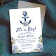 é um convite para chás de fraldas náuticos florais azuis