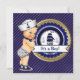 Convite de chá de fraldas náutico com fundo marinho azul e ouro e adorável convite de chá de fraldas náutico para o jovem marinheiro. Este adorável convite para chás náuticos é facilmente personalizado para o seu evento. Adicione os seus detalhes à frente e/ou atrás simplesmente adicionando os detalhes do evento, estilo da fonte, tamanho da fonte e cor e texto. Você também pode alterar a cor do plano de fundo para corresponder perfeitamente ao seu tema.