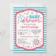 Convite para chá de fraldas super fofo em azul e vermelho para um chá de fraldas com tema náutico. Âncoras, rudes, dólares de areia, peixe-estrela, e conchas com listras pré-pinhosas.