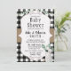 Este convite é enfeitado com algodão de aquarela e eucalipto verde e um padrão de verificação de búfalos em preto e branco com cinzas neutras, brancas e marrom de café. Todo o texto é editável - sinta-se à vontade para mudar o texto de um chá de casamento, aniversário, etc.