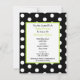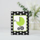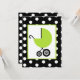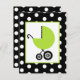Um convite unisex neutro do chá de fraldas que caracteriza uma ilustração de uma carruagem de bebê verde sobre um fundo do preto com bolinhas brancas. Personalize o texto sobre para trás com detalhes de sua ocasião.