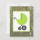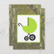 Um convite unisex neutro do chá de fraldas que caracteriza uma ilustração de uma carruagem de bebê verde sobre um fundo do camo. Personalize o texto sobre para trás com detalhes de sua ocasião.