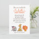 Um convite para chás de fraldas adorável apresenta uma doce ilustração aquosa de um elefante de cinza com arco violeta, uma girafa fofa e um leão. A parte de trás do cartão está decorada com pequenas bolinhas em fundo laranja Personalize este convite fofo e retrô com o nome do seu filho. Bela, simples, design simples. Perfeito para o primeiro bebê chá de fraldas, 1rua, aniversário, criança, crianças pequenas ou crianças mais velhas. As cores incluem a laranja e o amarelo das cinzas. Cor de fundo personalizável!