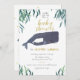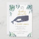 Coleção moderna personalizada e personalizada de convites para chás de fraldas de baleias, para uma festa de chá de fraldas fofa, caprichosa e semelhante a conto de fadas, para uma menina. Possui baleia bonitinha, mãe de baleia de esperma e sua baleia bebê, convidando seus entes queridos para um chá de fraldas.