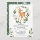 Convite para chás de fraldas elegante com ilustração aquosa adorável de um veado doce e verde botânico moderno em verde e ouro. Os campos de texto são totalmente editáveis. Você pode mudar a redação para se adequar ao seu evento, por exemplo, aniversário, chá de fraldas / borrifo, batismo, batizar, namorar dia, etc