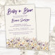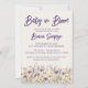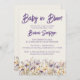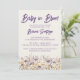 Flores roxas beige silvestres com chá de fraldas neutro por gênero. Personalize nomes, datas e informações.