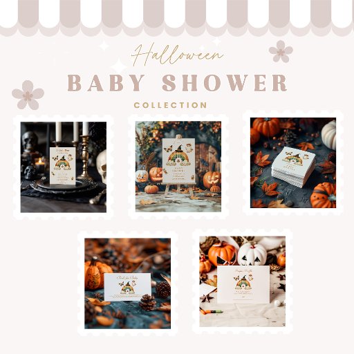 Celebre sua abóbora no caminho com este convite aconchegante e neutro para o chá de fraldas de Halloween. Apresentando um arco-íris mudo, nuvens sorridentes, borboletas de outono, e um pequeno fantasma com uma coroa floral, ele combina o encanto do outono com magia divertida e sazonal. Perfeito para mães de outubro ou novembro que amam designs modernos e suaves.