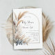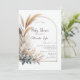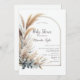 Apresentação de um convite à Chá de fraldas neutro em termos de gênero, combinando sem problemas o tema da grama dos pampas e o motif da arca de boho. Este convite cria a atmosfera perfeita para acolher um pequeno pacote de alegria, para uma mãe que ama boho chic, designs de arco, grama pampas e prefere uma celebração neutra em termos de gênero.