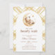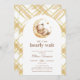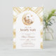 Sexo da Lua do Urso Teddy Sexo Um convite de Chá de fraldas neutro apresenta uma aquarela fofa de um ursinho dormindo em uma lua amarela, com um fundo de padrão de gingham. Personalize-o com os detalhes do evento. Um belo convite, perfeito para o seu evento!