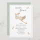 Um convite para chás de fraldas moderno e bonito. As cegonhas de aquarelas adicionam a este doce design. Sexo neutro em verde seno. Cores simples e pastel. 100% de satisfação do cliente com o "Zazzle"