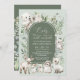 Este elegante convite para o chá de fraldas apresenta um moderno arco de vassoura adornado com verde aquarela macia e adoráveis animais árticos. Adequado para chá de fraldas de menino e de menina.