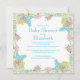 Comece seu chá de fraldas primavera ou chá de fraldas de verão neutro com nosso convite de chá de fraldas de flores para o hálito do bebê azul, tênue e na moda rosa e turquesa. Nossa bonito rosa claro de areia e o quadro floral azul de cor d'água são definidos em um fundo branco colorido e nítido. Visite nosso compro para uma grande seleção de belos convites para chás de fraldas para um chá de fraldas, chá de fraldas de menina, chá de fraldas de menino ou chá de fraldas neutro em relação a gênero.