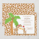 Adorável safari Chá de fraldas Neutral convite apresentando uma girafa de mãe girafa com sua girafa de bebê colocada sobre um padrão de girafa de impressão com uma palmeira safari. Perfeito para um convite de chá de fraldas de criança ou um chá de fraldas neutro. Correspondência, notas de agradecimento, autocolantes e postagens disponíveis em nosso compro. © Desenhos do Zenware