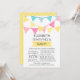 Comece seu chá de fraldas atual neutro em relação ao gênero com nosso convite para chás de fraldas moderno de bunting amarelo, rosa e azul. Nosso convite para na moda e chá de tendência apresenta um belo pennant de bunting para um chá de fraldas neutro em relação ao gênero. Sacudir o convite para encontrar bolinhas amarelas populares correspondentes de volta para um toque especial extra.