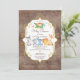 Animais de safari de cores aquáticas adoráveis colocados sobre um fundo de madeira com um quadro de ouro rico. Disponível no nosso compro para um chá de fraldas ou chá de fraldas de rapazes.