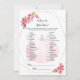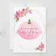 Flores cor-de-rosa e quadros geométricos de ouro rosa para comemorar num chá de fraldas. Uma grande abóbora rosa no centro. Editar áreas de texto para criar um jogo exclusivo e especial de chás de fraldas, como "O que há na bolsa?"