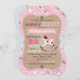 Cartão rústico do convite do chá de fraldas do tema da vaqueira. Caracterizando o bandanna cor-de-rosa imprima com sarja de Nimes e um cavalo de balanço. As cores são rosa, luz - azul, taupes, e branco.