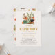 Convite de Chá de fraldas Ocidental do Cowboy. Celebre o seu pequeno cowboy que chegará em breve com este charmoso Um Pequeno Cowboy está no Caminho do Convite Ocidental, projetado para misturar o charme russo ocidental com um entusiasmo sincero. Bastante detalhado com botas de aquarela pintadas à mão, cactos do deserto e motivos clássicos de rodeio em neutrais da terra, laranjas ricas, pintas sutis e sotaques de ouro e preto, este convite é perfeito para um chá de temas ocidentais neutro em relação ao gênero. Traga o espírito do Oeste Selvagem para a vida e personalize este convite para torná-lo tão especial quanto o novo balde que está comemorando!