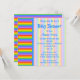 Este convite de chá de fraldas pode ser adequado se o bebê for um menino ou uma menina. Um padrão de listras em cores do arco-íris, com listras claras atrás do escrevendo. O texto está em azul e pode ser personalizado para criar um convite personalizado. Um design alegre e colorido.