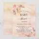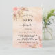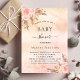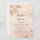 Para um chá de fraldas moderno estilo boho. Um fundo rosa dourado, rosado, rosado e roxo, com aspecto metálico. Decorados com ouro rosa e flores, rosas, grama-pampas. Personalize e adicione um nome e detalhes da parte.