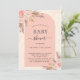 Para um chá de fraldas moderno. Um quadro de arco e impressão de mármore dourado rosa como fundo. Decorados com ouro rosa e flores, rosas e erva-pampas cor-de-rosa. Personalize e adicione um nome e detalhes.