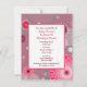 Um convite para chás de fraldas de meninas com uma ilustração de uma carruagem de bebê rosa sobre um fundo de flores e bolinhas. Personalize o texto com detalhes da sua ocasião.