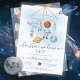 Houston, é um menino! Convites modernos e bonitos para Bebê Espacial. Possui astronauta, foguetes, planetas mars, terra e Saturno e estrelas penduradas em um celular. Excelente para um bebê estar com um chá de fraldas temático. Você pode mudar para uma garota ou, se não tiver certeza, mudar "garoto" para "bebê".
