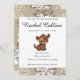 Um cachorrinho bonito é o ponto focal deste convite para chás de fraldas. As bordas e as costas elogiam este design com folhas tropicais bonitas em castanhos e brancos. Todo o texto pode ser editado de acordo com suas necessidades, então pressione o botão personalizar.