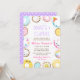 Este convite bonito e divertido apresenta rosquinhas decoradas e biscoitos em tons pastéis de azul, rosa, amarelo e roxo. Há um coelho bonito, pintinho, ovos de páscoa e cenouras. O texto combina o script manuscrito e as fontes sans serif para uma aparência na moda e moderna. Isto é perfeito para um Chá de fraldas com Páscoa ou primavera.