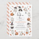 Prepare-se para um chá de fraldas de Halloween spooktacular! Torne a chegada do seu pequeno Boo especial com nosso convite personalizado de "Peek A Boo Chá de fraldas". Celebrar com um design único e personalizado que inclui o charme de designs de aquarelas pintadas à mão de fantasmas assustadores, aranhas bonitinhas, abóboras brancas, e folhas de laranja queimadas autôneas, misturando sem esforço a alegria de receber um novo bebê com o espírito de Halloween cheio de diversão. Peça agora e comece perfeitamente com suas comemorações de Halloween!