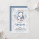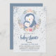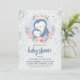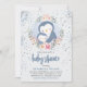 Chá de fraldas Invitation apresenta mãe e bebê de pinguim em um fundo azul e borrifadas de falso brilho. Personalize com detalhes do partido.