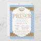 Brilho Dourado, azul bebé real. Dê boas-vindas a um príncipe pequeno ou comemore seu aniversário com este convite real querido.