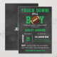 Cartões únicos de chá de bebê de futebol desportivo. Toca para baixo! - Perfeito para aquele chá de fraldas desportivo. Verde, castanho, branco e preto no quadro. Placas de modelo editáveis - adicione suas informações. Obter adesivos correspondentes!