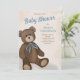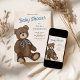 Celebre a chegada do seu pequeno com este convite de chá de fraldas de bebê com um design de ursinho giro em tons azuis suaves. Mostrando um roteiro elegante de caligrafia e uma tipografia refinada, este convite combina o encanto de vintage com um estilo mínimo simples para um olhar que é clássico e clássico. Perfeito para os pais que amam detalhes do eterno com um toque doce, este convite dá o tom para uma celebração memorável.