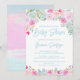 Pêssego rosa-azul flores roxas florais chá de fraldas convite para uma festa de formando divertida