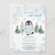 Bem-vindos convidados para a sua celebração acolhedora com este adorável Convite Chá de fraldas de Pinguim Azul de inverno! Apresentando um pinguim doce vestindo um cachecol azul, este convite é perfeito para um chá de fraldas de inverno para um menino. As matizes azuis suaves e os elementos de inverno, como flocos de neve e sotaques gelados, criam uma atmosfera deliciosa e caprichosa. BBS562