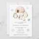 Chá de fraldas russo com pinguins bonitos, um iglu e flocos de neve. Perfeito para um chá de fraldas de inverno. As palavras podem ser alteradas para se adequarem aos seus próprios detalhes ou requisitos