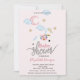 Pequeno pônei, estrelas, lua e nuvens em cor-de-água em fundo rosa.Esses convites para chuveiros de bebês são facilmente personalizados para seu evento simplesmente adicionando seus detalhes.