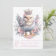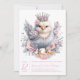 Páscoa de chá de fraldas com um belo pintinho de menina adorado com joias e tiara num fundo floral cor-de-rosa. Este convite para chá de fraldas de pintinho para meninas recém-nascidas é facilmente personalizado com seu texto e você pode alterar a cor de fundo na frente e atrás e a cor do texto.