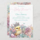 Páscoa de meninas, convites para bebês com princesa pintinho com ovos, flores e borboletas. Este doce convite para chás de fraldas de pintinho é facilmente personalizado com seu texto e você pode alterar a cor de fundo.