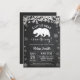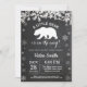 Convite para Chá de fraldas de inverno do Urso Polar. Floco de neve branco. Convite para Chás de fraldas de Menino ou Menina. Convite para Chá de fraldas de férias de inverno. Fundo Chalkboard. Preto & Branco. Para mais personalização, clique no botão "Personalizar" e use nossa ferramenta de design para modificar este modelo.