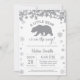 Chá de fraldas Polar Bear Winter Floco de Neve Convite. Cinza Floco de Neve. Convite para Chás de fraldas de Menina ou Menina. Chá de fraldas De Feriado De Inverno Convide. Fundo Branco.